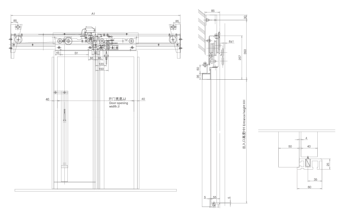 4、采用重錘關(guān)門方式,重錘和導(dǎo)桿置于門板內(nèi)側(cè)
